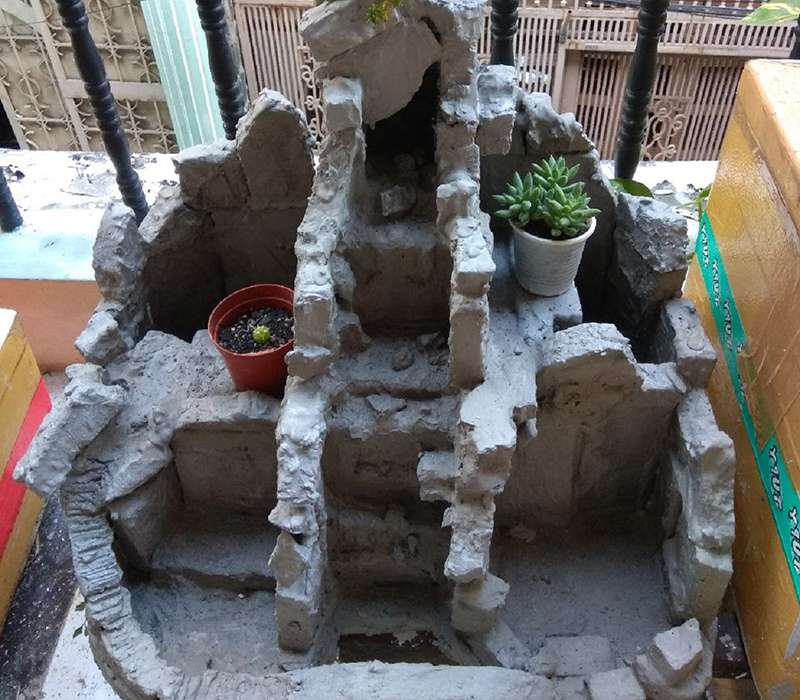 Bước 5: Khi xi măng đã khô hoàn toàn, sử dụng bột màu xây dựng để tô thêm các chi tiết và tạo hiệu ứng thực tế cho hòn non bộ xi măng thêm bắt mắt hơn.