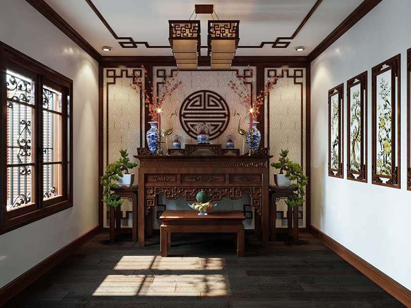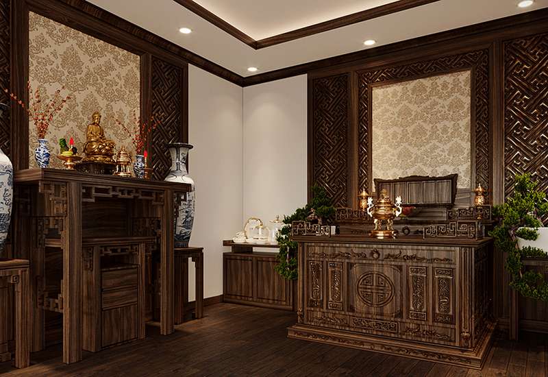 Chiều cao trần: Khuyến nghị chiều cao trần của phòng thờ từ 2,5 đến 3 mét. Điều này tạo cảm giác rộng rãi và thoáng đãng, và cũng thích hợp cho việc treo tranh, hoặc các vật phẩm trang trí khác liên quan đến tôn giáo.